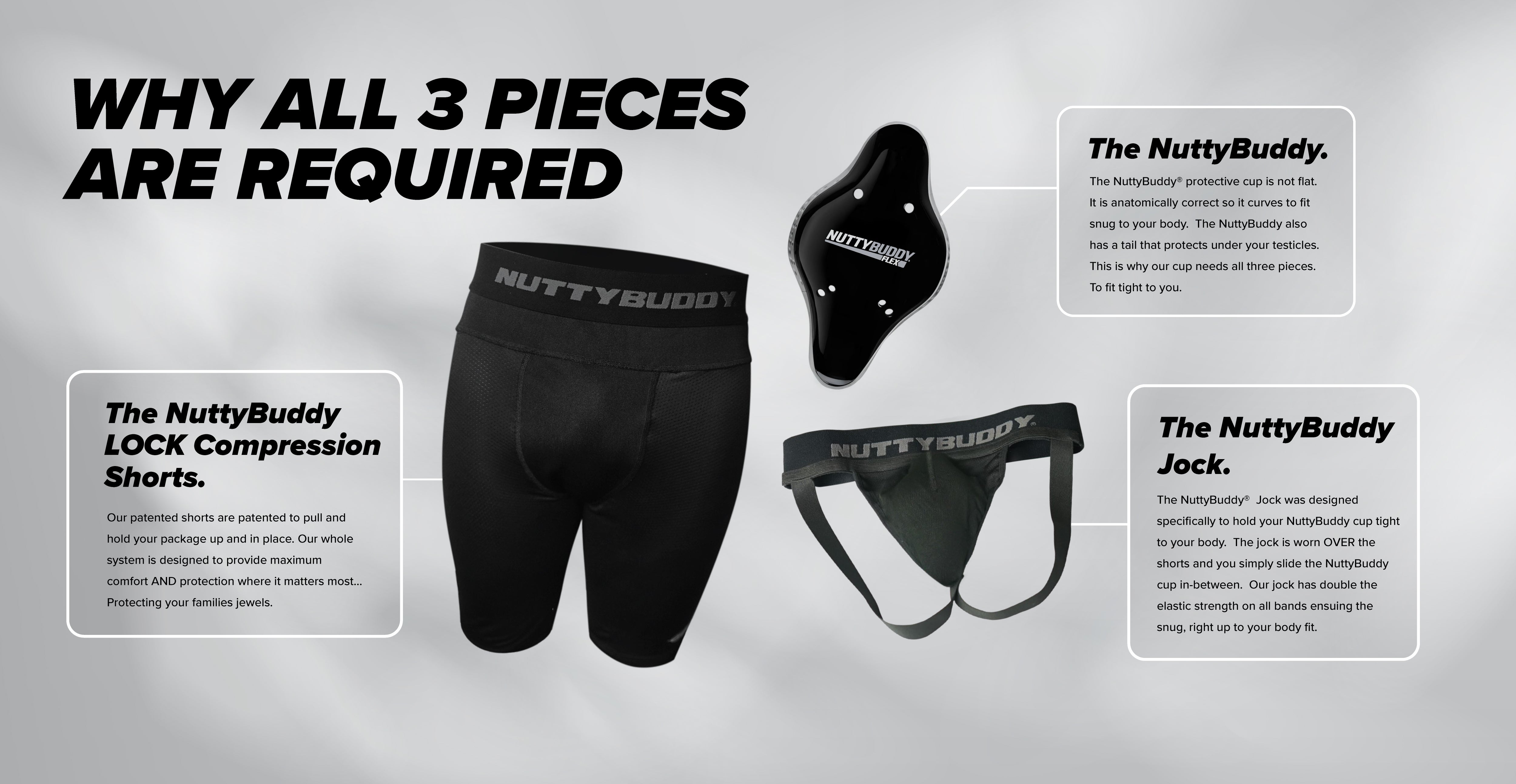 The Nutty Buddy system isn’t just about one piece—it’s a carefully designed trio that works in perfect harmony to deliver maximum protection, unparalleled comfort, and optimal performance. Here’s why each piece matters: